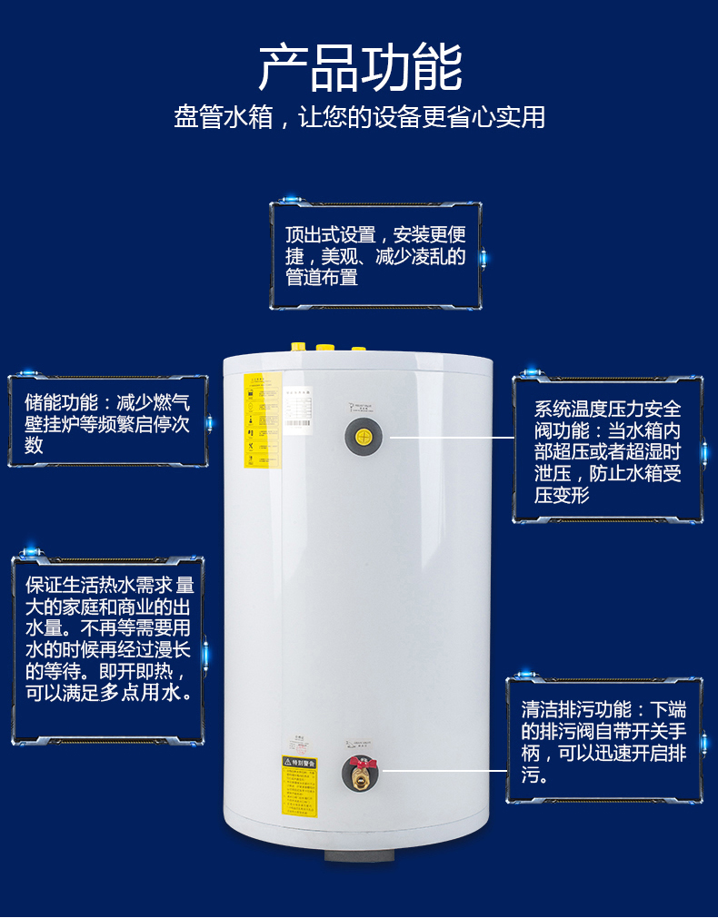 单盘管不锈钢太阳能保温水箱储能热水水箱换热水箱锅炉水循环水箱