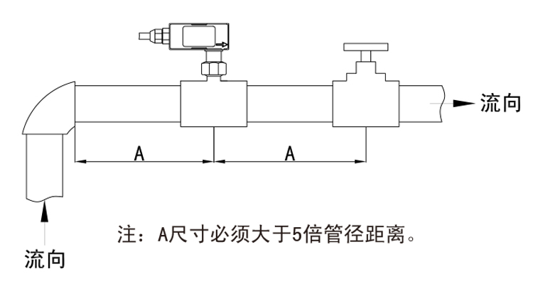 注:安装挡板式流量开关时需要注意管道中的水流方向一定要和 流量开关接线盒上的箭头方向一致,否则水流开关无法工作。另 外切勿用手扳动黑色塑料壳,否则流量开关将无法工作。