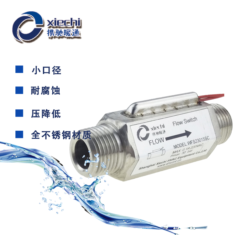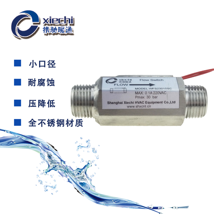 WFS23系列是针对非空调领域开发的高性能流量开关,在流量开关内部安装有高性能的永磁体,磁体通过流通发生作用,驱动密封在流量开关上部的磁敏开关直接动作。