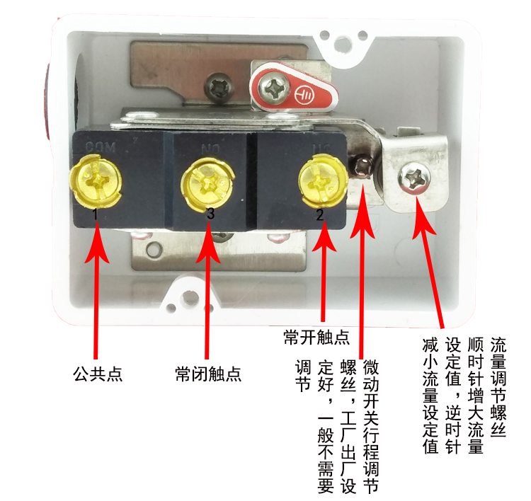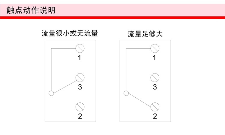 安装挡板式流量开关时需要注意管道中的水流方向一定要和流量开关接线盒上的箭头方向一致,否则水流开关无法工作。